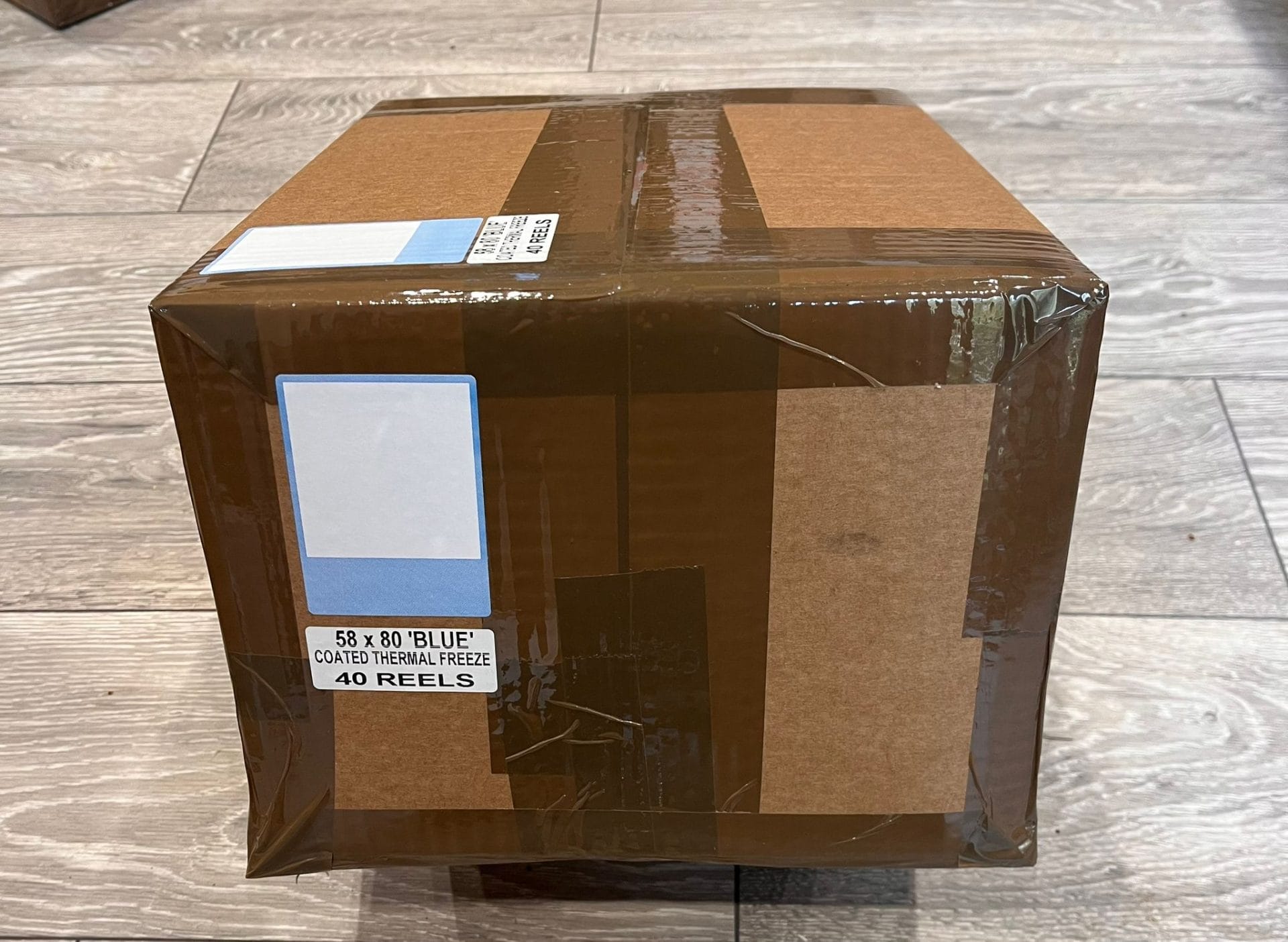 58mm x 80mm Scale label – Blue border – Box of 40 rolls